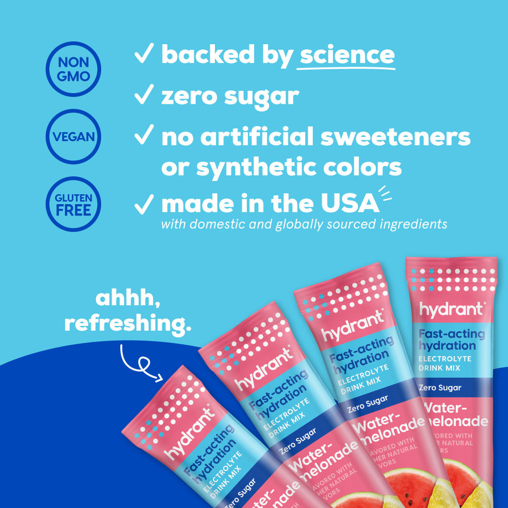 With Hydrant, water and electrolytes rapidly absorb nto your bloodstream – delivering hydration 2x faster than water alone* *Based on clinical studies