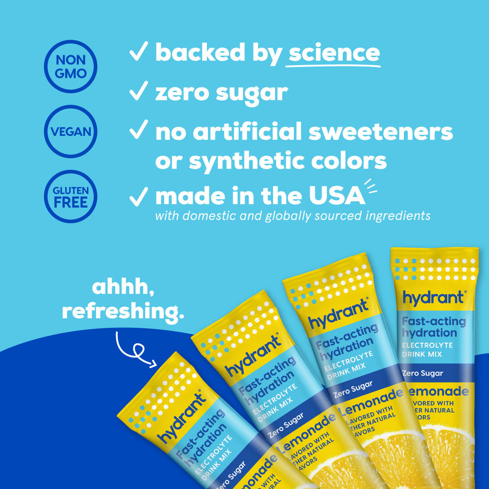 With Hydrant, water and electrolytes rapidly absorb nto your bloodstream – delivering hydration 2x faster than water alone* *Based on clinical studies